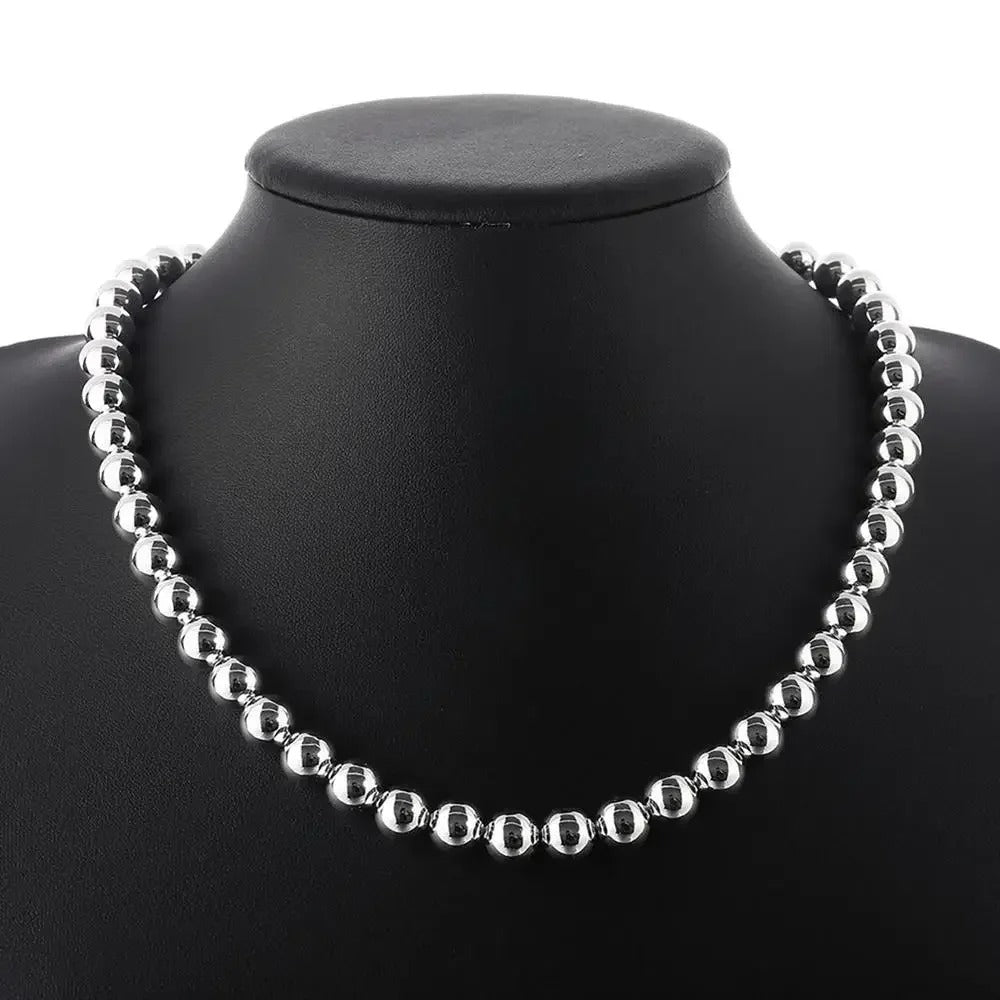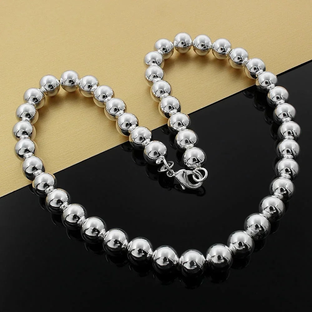 Luxuriate in elegance with this exquisite 925 Sterling Silver 10mm Hollow Smooth Bead Ball Beaded Chain Necklace. Expertly crafted from premium sterling silver, this statement piece combines timeless design with exceptional quality.