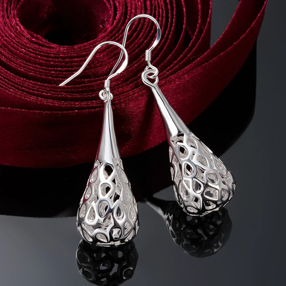 925 Sterling Silver Hollow Water Drop Earrings - Women's Jewelry EAL135