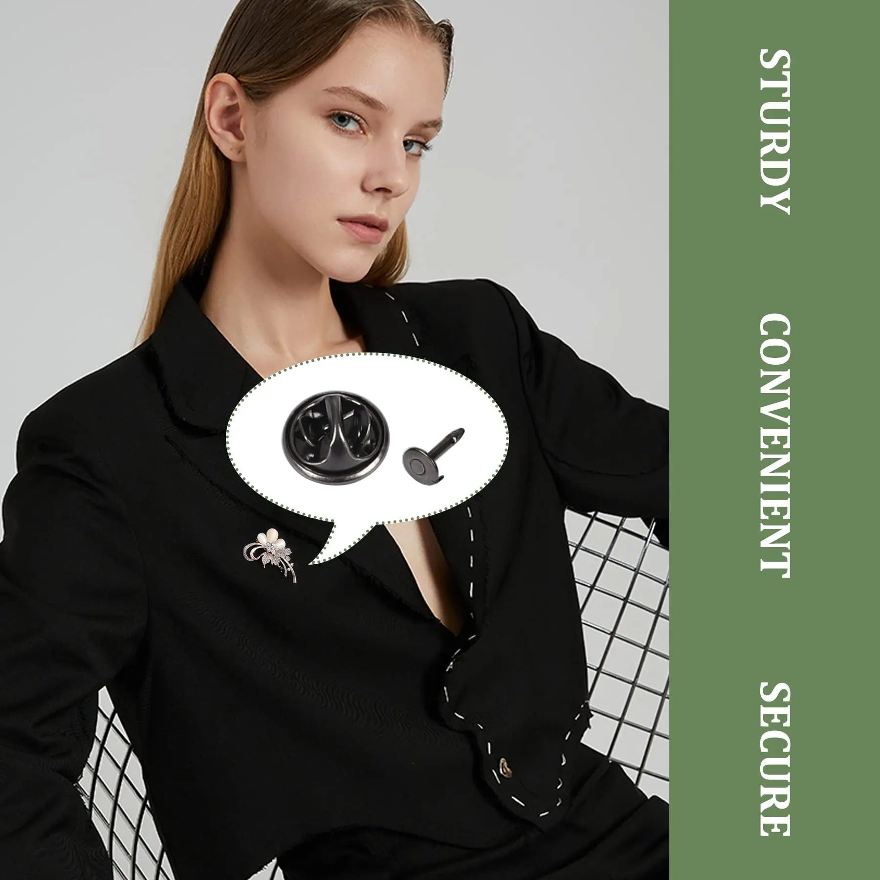 • Secure Fastening: Butterfly clutch design ensures pins stay firmly in place