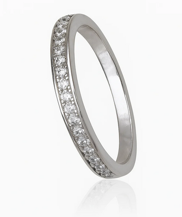 This delicate yet dazzling band features brilliant cubic zirconia stones set in genuine .925 sterling silver. The slim 3mm width makes it perfect for stacking with other rings or wearing alone for a subtle touch of sparkle.