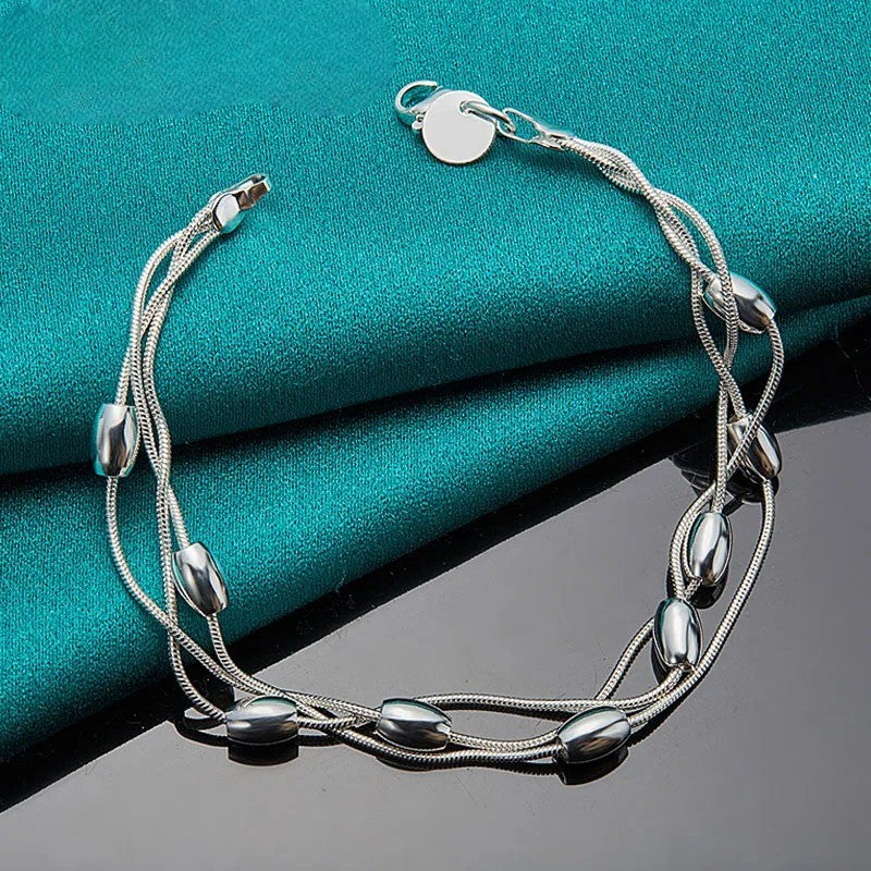 Experience the elegance of authentic 925 sterling silver with this beautifully crafted three strand chain bracelet. The delicate triple-strand design creates subtle movement and dimension on the wrist.