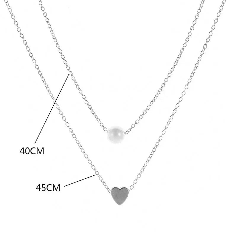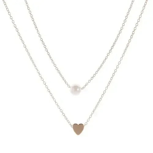 Sterling Silver Double Layer Necklace with Pearl & Heart Pendant